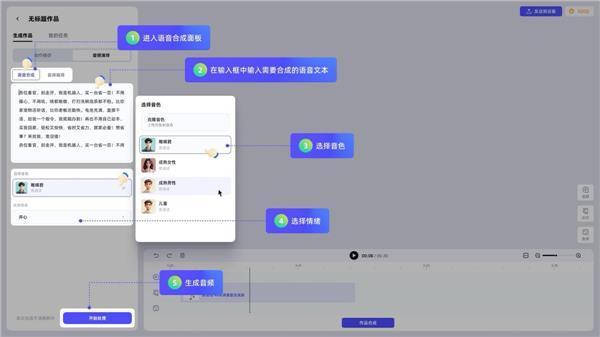 语音即灵魂: 用户输入文本或上传音频,平台即可合谚语音,并智能匹配相应的动作与脸色,杀青音、画、行同步。