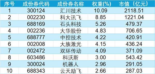 表:中证机器东谈主指数前十大因素股(起首:中证指数公司,Wind,数据截止2025年10月28日)