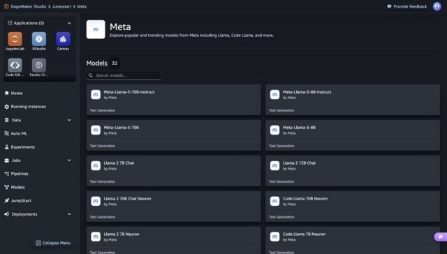 点击Meta hub,用户不错在SageMaker JumpStart中发现统统可用的Meta模子。
