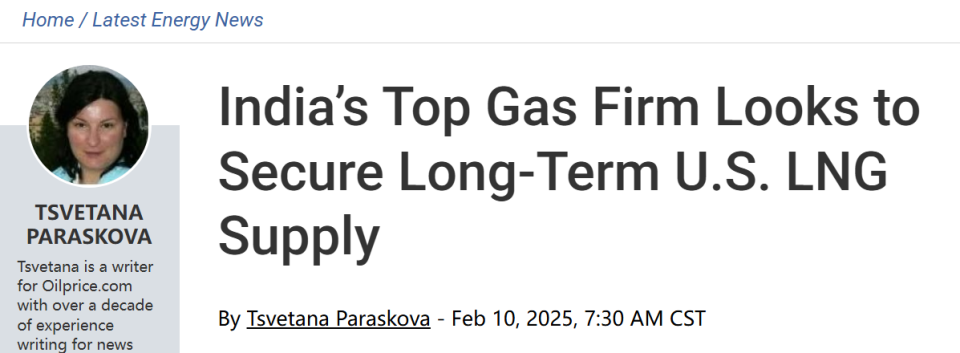 凭据路透社的报说念,为加多对好意思国液化气的采购,印度GAIL India Ltd. 董事长 Sandeep Kumar Gupta 暗示,该公司正在寻求购买好意思国液化自然气 (LNG) 工场的股份或确保好意思国液化自然气的永恒供应。与此同期, 印度国有的石油公司正在与好意思国公司 Cheniere Energy 进行一项为期 15 年的液化自然气往复谈判,每年往复量在 150 万至 200 万公吨之间。